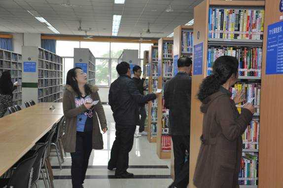 册比赛书目并记录下来,统一汇总后,再进行随机互换,由其它组成员在规定时间内找出相应的图书。最终优胜组党员用时
