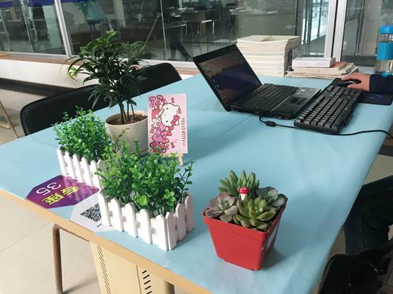 3月初,图书馆推出“打造你的个性化座位”的活动,预约成功的同学可以免费领取图书馆送出的小绿植或金鱼等作为专座标志,还可以完全按照自己的喜好布置座位空间。该活动在全校学生中征集报名,仅两天,通过微信以及到图书馆来预约专座的同学已经爆满,最终前60名同学如约预约到专座。