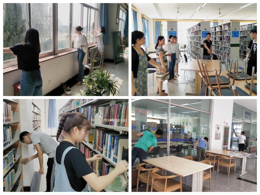 为保障分组讨论会的顺利召开,从8月29日开始,图书馆全体职工对全馆进行了全面的清扫清洁工作。简单动员之后,全体馆员积极响应,大家以饱满的热情投入到工作当中,期间十几位学生志愿者也加入到清扫行列,擦玻璃、拖地、摆放桌椅、修整设施,工作虽然繁琐,但大家依然做得一丝不苟,经过一番努力,图书馆环境焕然一新。