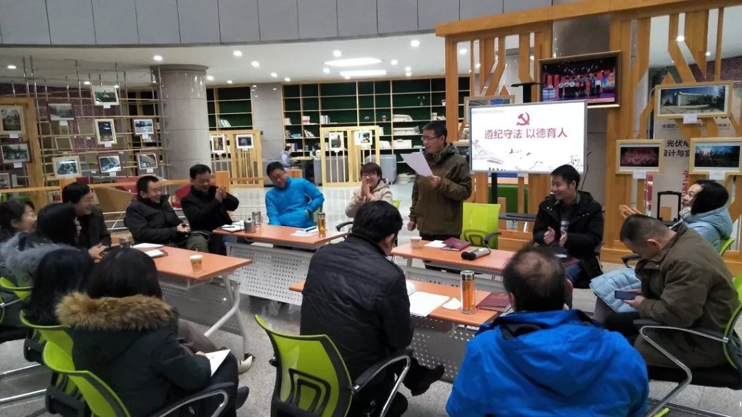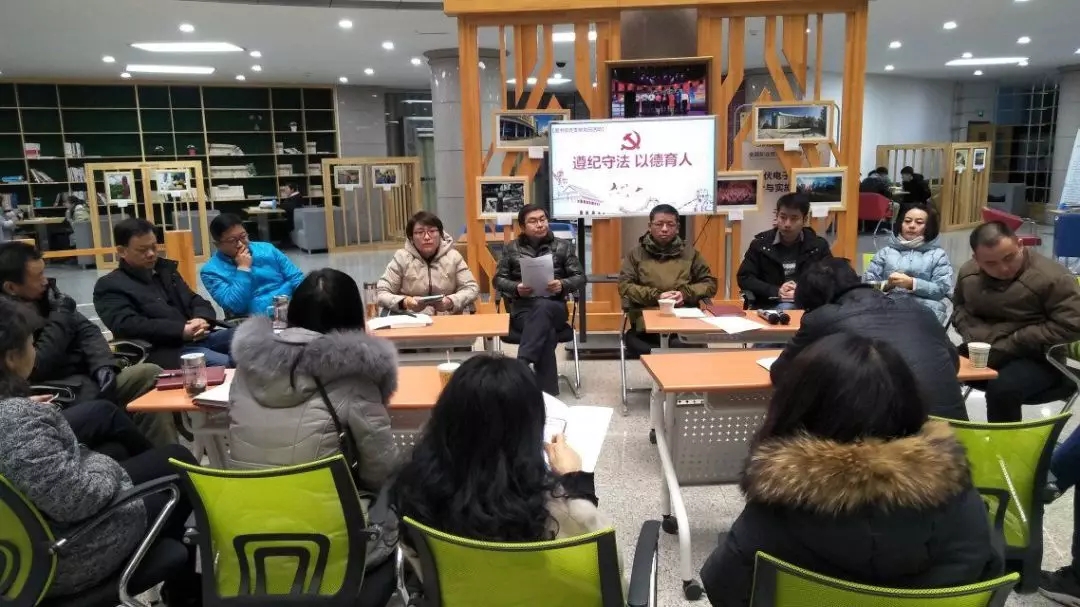 十二月十日上午,在图书馆一楼教师发展中心,图书馆党支部举行了以“遵纪守法、以德育人”为主题的读书交流会,全体党员参加了交流会,并围绕本次活动的主题进行了交流。