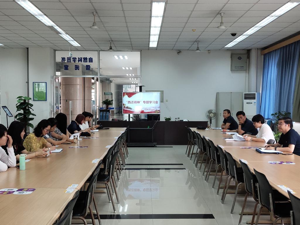 6月17日上午,图书馆党支部组织召开“西迁精神”专题学习会,会议由图书馆党支部书记王丁主持,教务党总支书记南欢出席专题会并同党员同志一同学习。