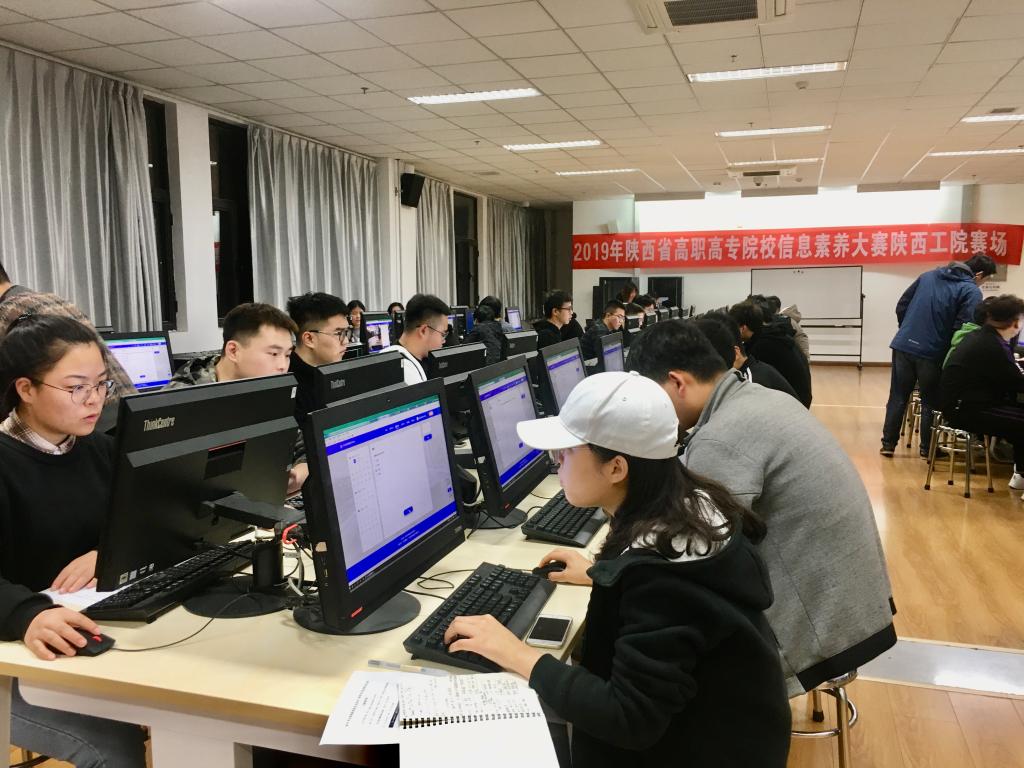 28日晚七时许,2019年全国高职院校图书馆信息素养大赛陕西省选拔赛陕西工院赛区在信息工程学院精艺楼5014机房激烈开赛。本次竞赛活动可在电脑端和手机端同时答题,选手在作答时系统会自动在题库中抽取55道题目,包含单选题、多选题、判断题等类型,选手需要在一个小时内完成作答并提交,最终组委会按分数与答题时间确定入围学生名单。