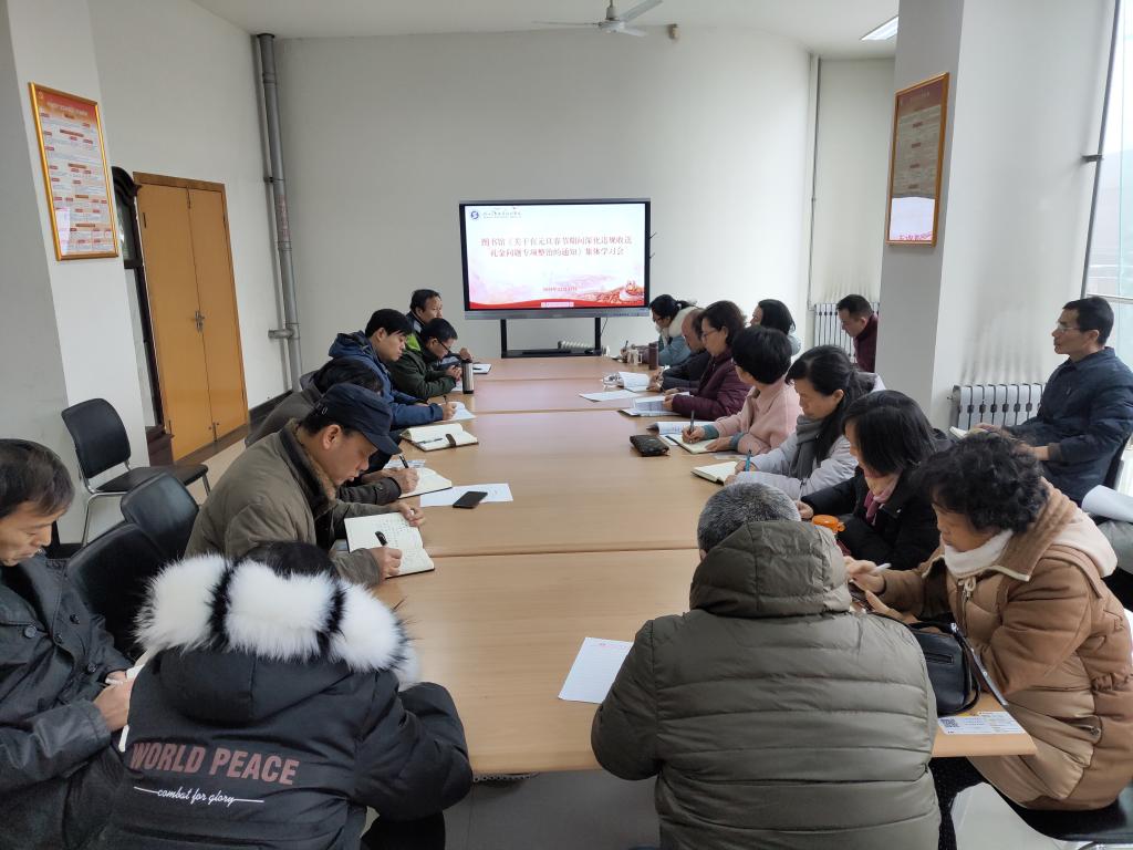 12月31日上午,图书馆在二楼会议室开展学习违规礼金问题专项整治工作会议精神,会议由图书馆馆长高凤香教授主持,全体馆员参加。