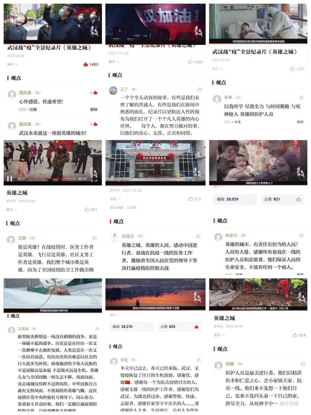 纪录片用镜头真实记录了武汉战“疫”两个月的重要历史时刻,解密了武汉战“疫”过程中点点滴滴的背后故事。在观看记录片的过程中,馆员们纷纷在视频下方发表感言。