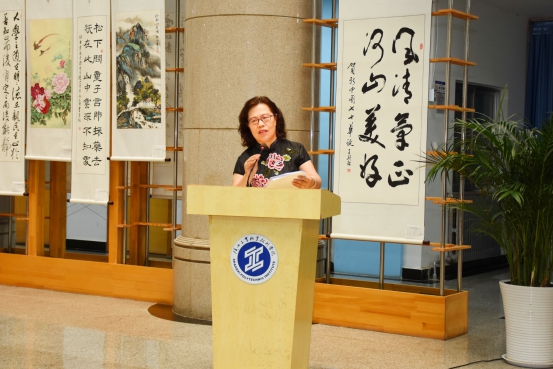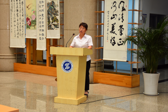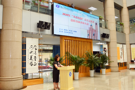 图书馆馆长高凤香介绍了本次读书文化节基本情况,在学院领导、各二级学院以及各教学部的大力支持下,各学院师生积极参加了读书文化节六类八项活动;与以往不同的是,本次活动结合战“疫”形势,以“见证中国精神,感悟文化之美”为主题,统一采用线上云端的方式举行,分别是“为爱发声”师生战‘疫’同朗诵“见证·中国力量”主题朗读比赛、“见证·中国精神”系列主题作品展、“见证·设计之美”——主题图像创意设计征集活动、“感悟·经典之美”主题阅读推介活动、“感悟·名师之魅”——14天听讲座打卡活动以及书香校园”读书文化节先进典型表彰交流活动。活动一经发布,全院师生便纷纷参与其中,勇敢积极的展现自身才华,为本次读书文化节活动留下了不少优秀作品。