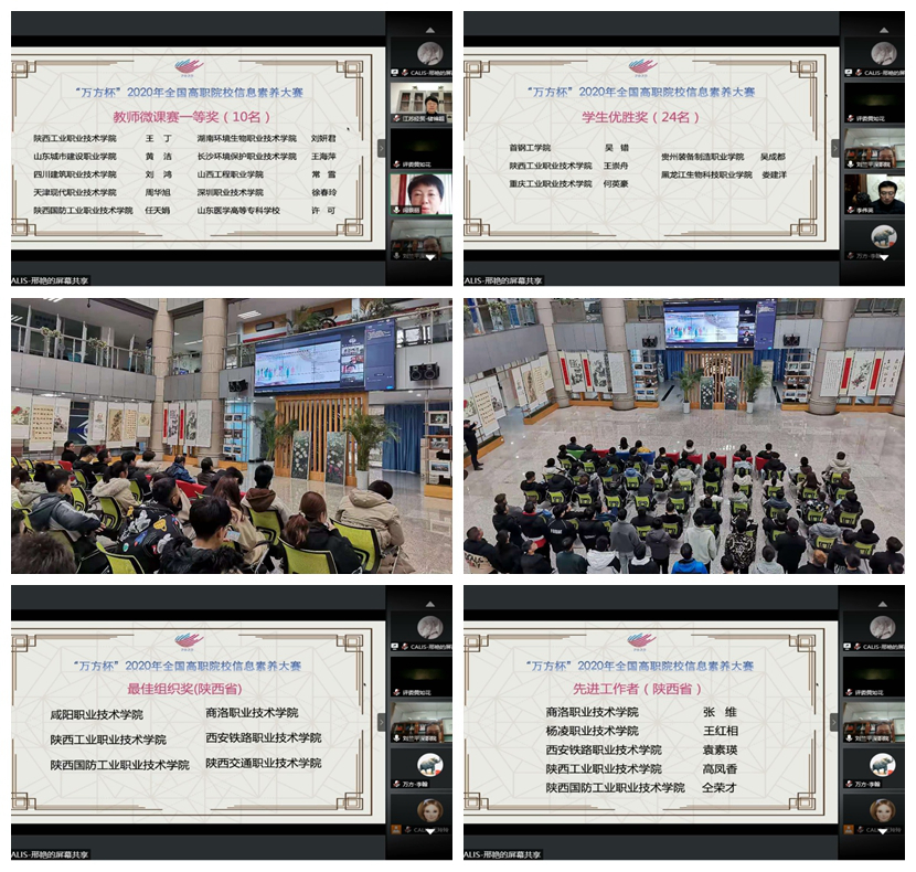 由于疫情影响,今年大赛于8月底才得以启动,但依然得到了全国高职院校的热烈响应。我院图书馆同步启动筹备工作,牵头成立陕西省赛组委会,由我院副院长梅创社担任省赛组委会主任。面临时间紧任务重形势,克服诸多不利因素,我院图书馆联合信息化与网络安全处,先后筹备启动选拔培训学生、教师录制微课等校赛工作,并牵头组织陕西省赛选拔赛、全国复赛、决赛等相关比赛,完成组委会的相关任务,协调带动我省21所高职高专院校4226名学生参与到信息素养大赛中。
