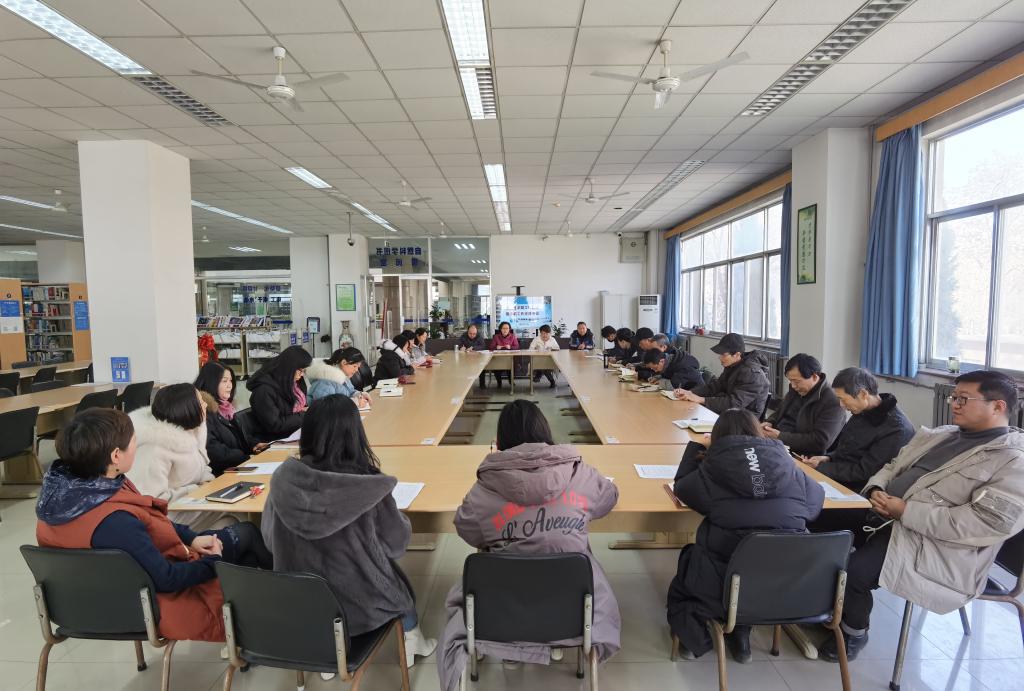 2021年1月13日下午,图书馆在二楼南阅览室召开本学期工作总结暨寒假工作安排会议,会议由图书馆馆长高凤香主持,全体馆员参加会议。