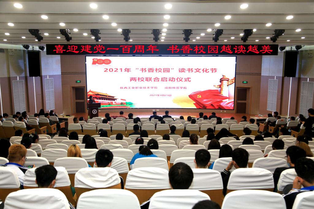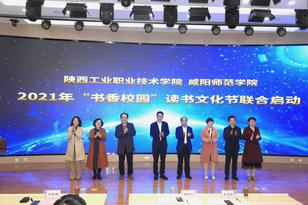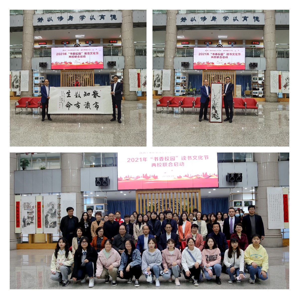 4月23日,第26个“世界读书日”的节点,我院与咸阳师范学院联合启动2021年“书香校园”读书文化节,咸阳师范学院副校长毛龙灿一行、西安电子科技大学博导卢朝阳馆长出席,我院副校长梅创社携我院组织部、宣传部、院工会、学生处、信息化与网络安全处、十个专业二级学院、马院、公共课教学部、院团委等部门领导,以及向阳读书社的老师与图管会、“星火”读书社的同学们参加。活动由图书馆馆长高凤香主持。