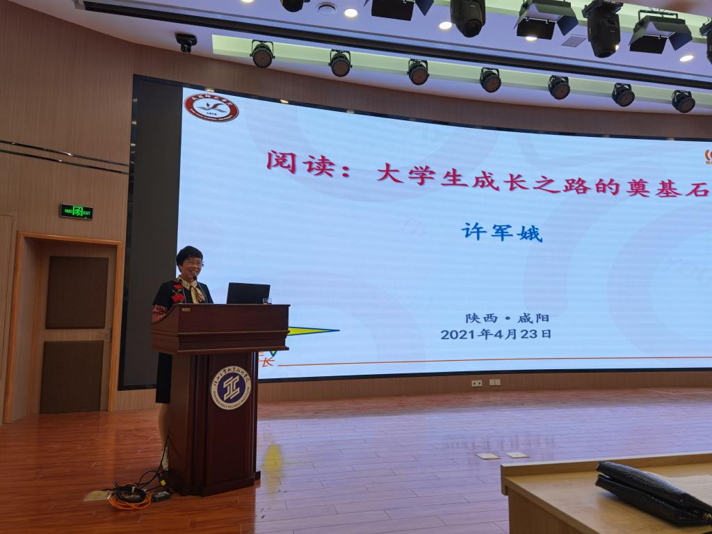 在专题报告环节,文学博士、西部儿童文学研究中心主任、咸阳师范学院文学与传播学院许军娥教授为广大师生带来了题为《阅读,大学生成长之路的奠基石》专题报告。西安电子科技大学博士生导师,图书馆、档案馆、校史馆、博物馆馆长卢朝阳教授为广大师生带来了题为《革命圣地 红色陕西》的专题报告。