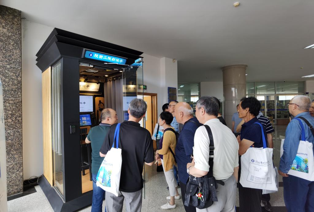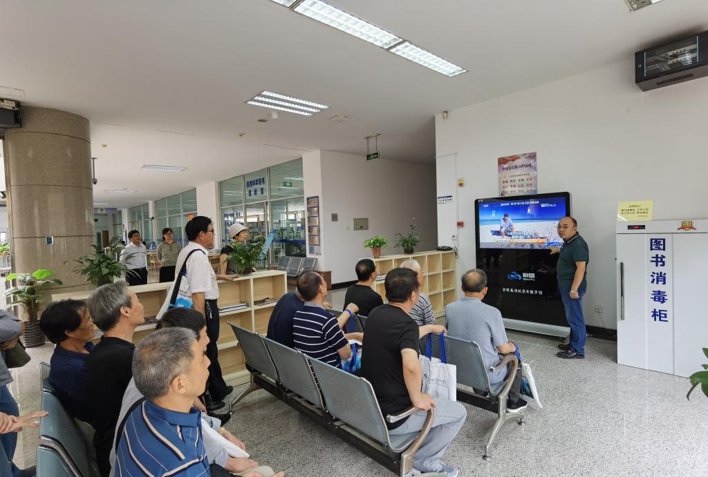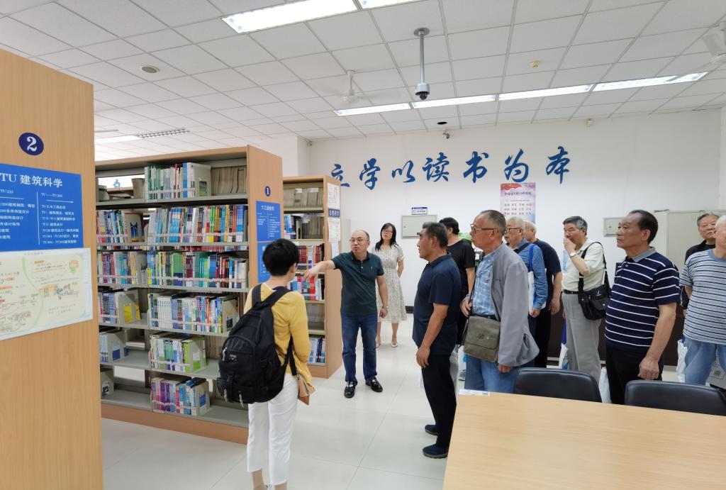 蒋主任对老校友的到来表示热烈的欢迎,并向大家介绍了图书馆近年来的发展情况。随后带领大家参观了朗读亭、自然科学阅览室、多功能视听区,并体验了听书椅、自助图书杀菌机等智能化设备。