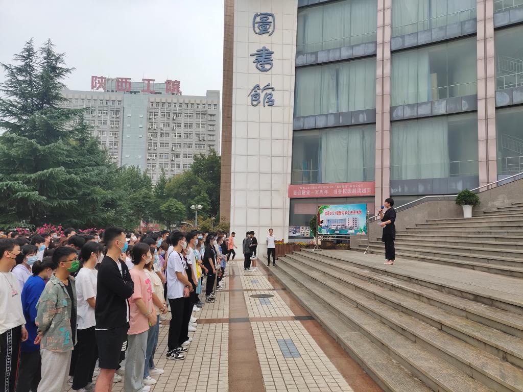 随后,馆长高凤香教授以“寄语动员”的形式,为参加入馆教育的新生精彩开讲。她从百强示范、双高A档的陕西工业职业技术学院,到快节奏发展的各个二级学院,为青年学子讲述着建校70多年来工院人代代累积的精神财富,激励青年学子为梦起航。思路决定出路,行动决定圆梦。高馆长激励学子们以平台为舞台,扎扎实实践行“开卷有益多读书”、“仰望星空读好书”、“脚踏实地读书好”的读书理念,在人生新的阶段健康成长、快乐成才、追求成功。最后,高馆长希望同学们“夯实基础,厚土承德;精益求精,成才成功;信息在握,筑梦追梦;梦在蓝天,展翅翱翔;加油赋能,通达人生。”