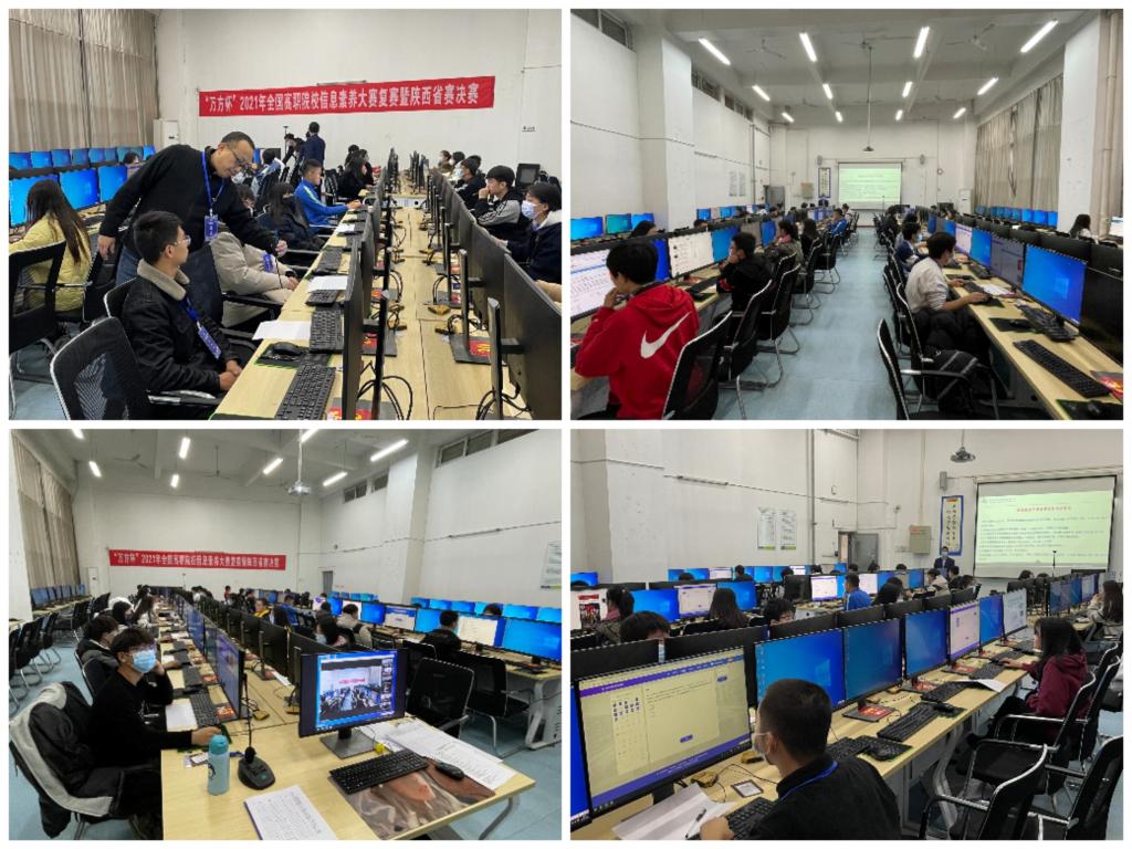 开幕式结束后,选手们来到主考场,问建军、王丁、石高峰为省赛监考,对参赛选手的身份信息进行核对,由工作人员引导学生们按照抽签号就座。上午十点,比赛正式开始,陕西赛区的参赛选手们通过上机考试展开比拼。赛场上,选手们沉着冷静,认真答题。贺建锋、高凤香、袁素瑛等巡视了考场,技术保障组的工作人员尽职尽责,确保比赛顺利进行。