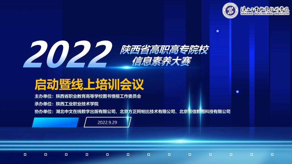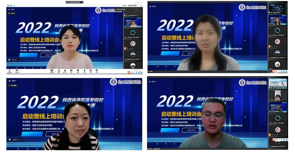 9月29日下午,由陕西省职业教育高等学校图书情报工作委员会主办、我校承办的2022年陕西省高职高专院校信息素养大赛启动暨线上培训会通过腾讯会议平台召开。会议围绕“2022年陕西省高职高专院校信息素养大赛”的省赛动员、全国大赛组委会赛程及参赛方法精讲、省赛规则解读、竞赛平台使用和培训、教师微课教学与制作、学生参赛经验分享等相关主题展开了研讨交流。