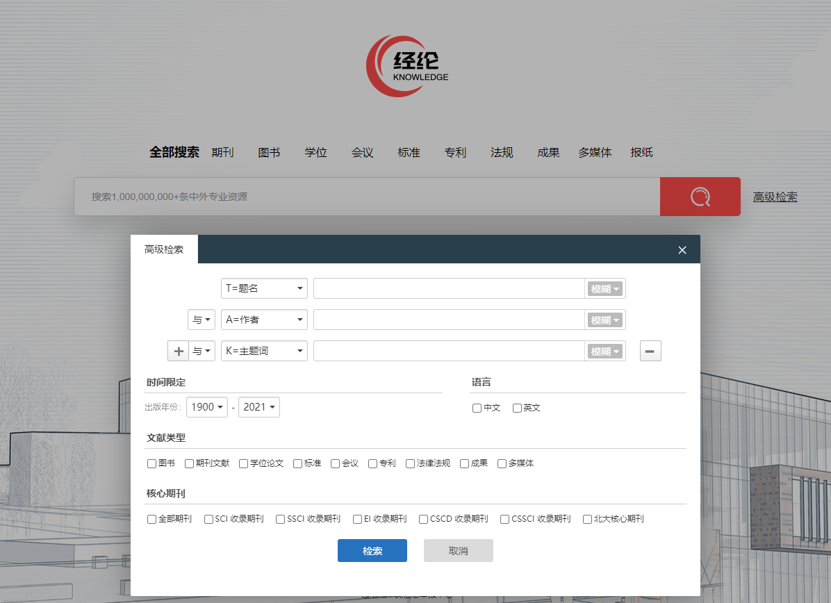 根据元数据字段进行组合检索,包括标题、关键词、作者、isbn、issn、出版物名称、出版社、分类号、摘要、基金等丰富的检索字段。并且可以选择精确匹配、模糊匹配、前置匹配。可以标识核心期刊、筛选SCI/EI核心期刊收录文献。