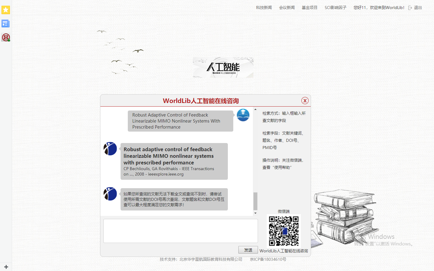 worldlib人工智能在线咨询通过微信端和网页端向师生提供文献查询服务,可以满足不同师生对外文文献的获取需求。