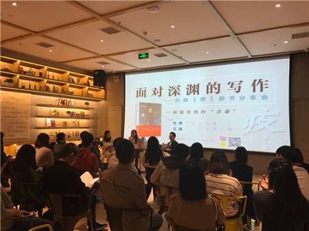 据说“面对深渊的写作”这个活动主题是孙频亲自定下来的,作为一名纯文学作家,对于写作,对于文学创作的意义,她更有自己独特的感受。目前正就读于中国人民大学创意写作研究班的她在活动现场跟读者分享了很多自己的创作感受。写作从来都是孤独的,面对深渊也许是最贴切的比喻。