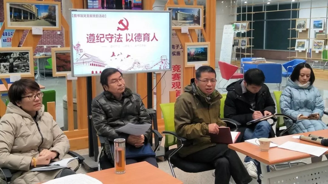 十二月十日上午,在图书馆一楼教师发展中心,图书馆党支部举行了以“遵纪守法、以德育人”为主题的读书交流会,全体党员参加了交流会,并围绕本次活动的主题进行了交流。