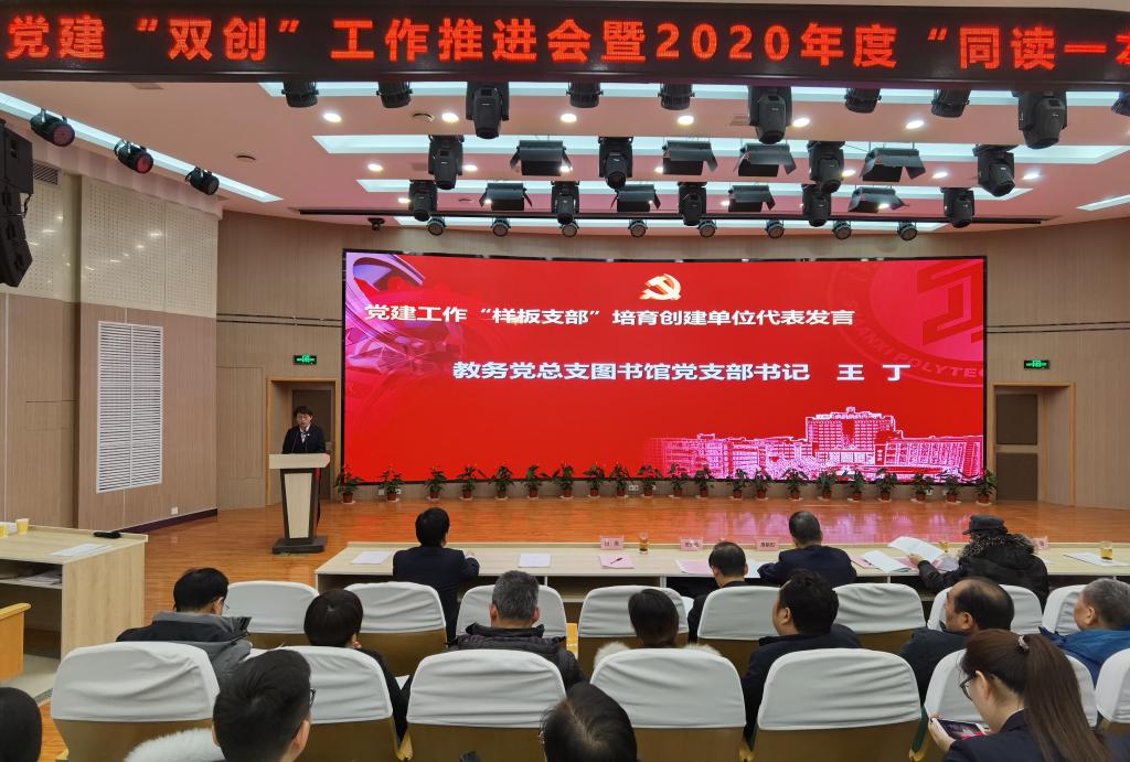 12月3日下午,我院党建“双创”工作推进会暨2020年度“同读一本书”学习交流分享会在学术会堂隆重召开,教务党总支第二党支部(图书馆党支部)被确定为2020年度党建工作“样板支部”培育创建单位,支部书记王丁荣获2020年度第一届党支部书记微党课大赛三等奖,陈翔川同志荣获2020年度“一总支一品牌,同读一本书”一等奖。